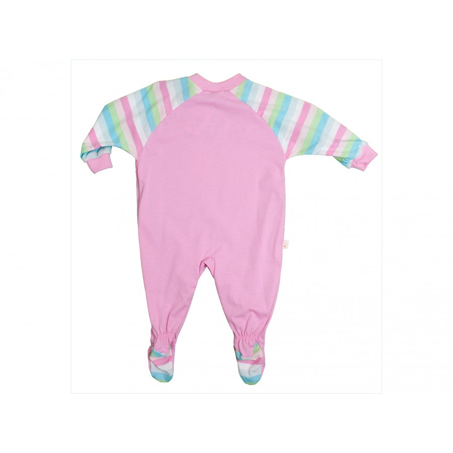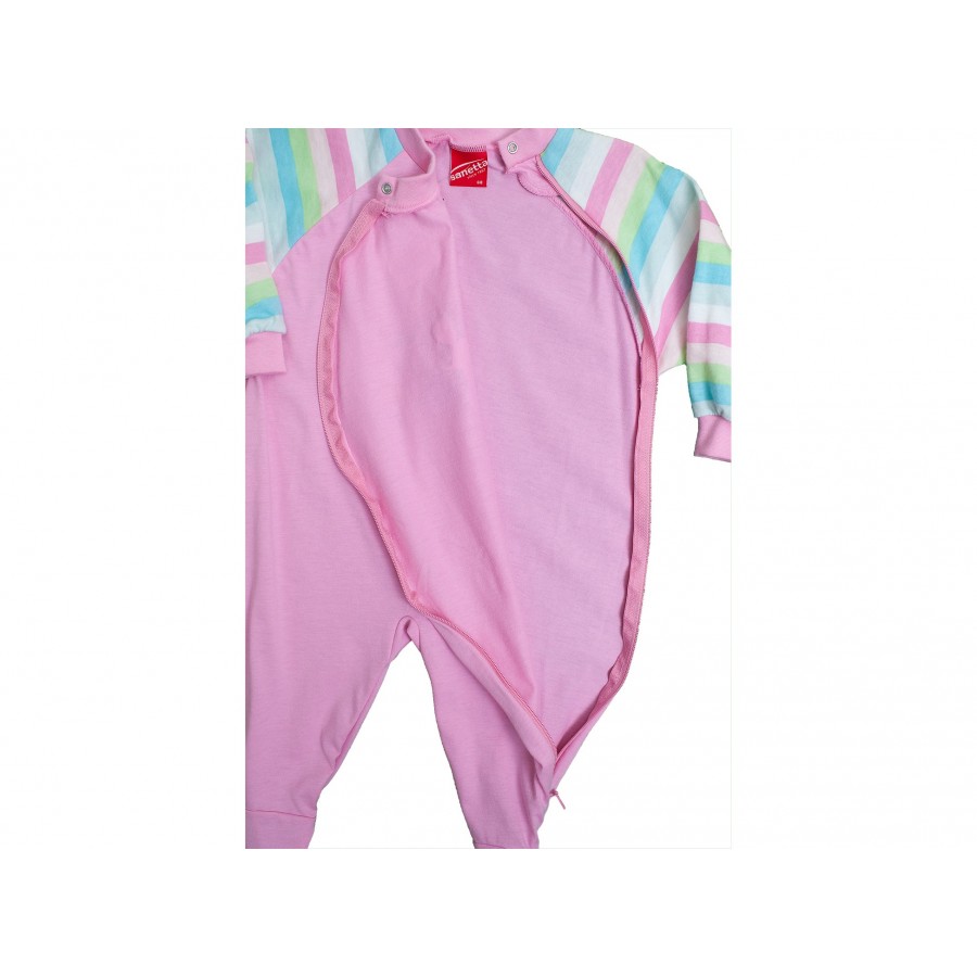 Длинный рукав реглан, молния сбоку по всей длине, ворот на кнопке, закрытые ножки, рисунок, эластичный ворот и манжеты, разноцветные вставки на рукавах и подошвах